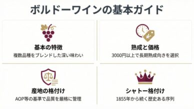 地方の特徴 初心者のためのBordeaux(ボルドー)解説。特徴・法律やオススメのワイン! 飲食店などで、「Bordeaux(ボルドー)」や「シャトー○○」という名前を目にすることはないでしょうか?これはフランスのボルドー地方のことですが、法律や格付けなどが入り組んでいて、ビギナーにはイメージがわきにくくなっています。格付けの仕組みだけでなく、味わいの特徴やオススメワインも解説します。 地方の特徴学ぶ