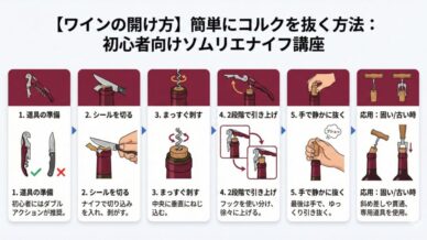 ワインライフ 【ワインの開け方】簡単にコルクを抜く方法を解説! ワインのコルクを抜くときに失敗していませんか?写真付きで手順を解説していますので、画面を見ながら練習してみてください。コツさえつかめば、だれでもすぐに抜けるようになりますよ。 ワインライフ