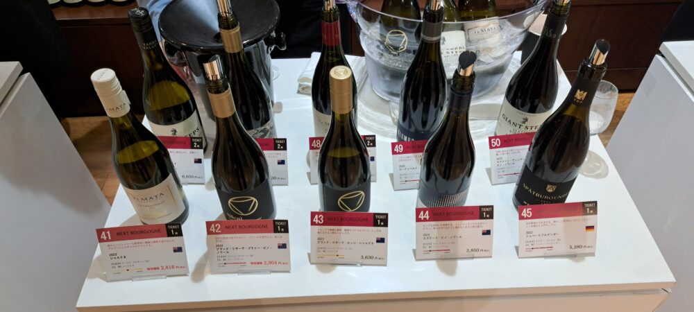 このブースでは、ブルゴーニュ品種で有名な産地であるドイツ、ニュージーランド、オーストラリアなどのピノ・ノワールやシャルドネが試飲できます。