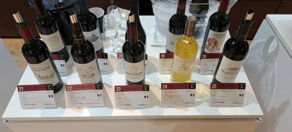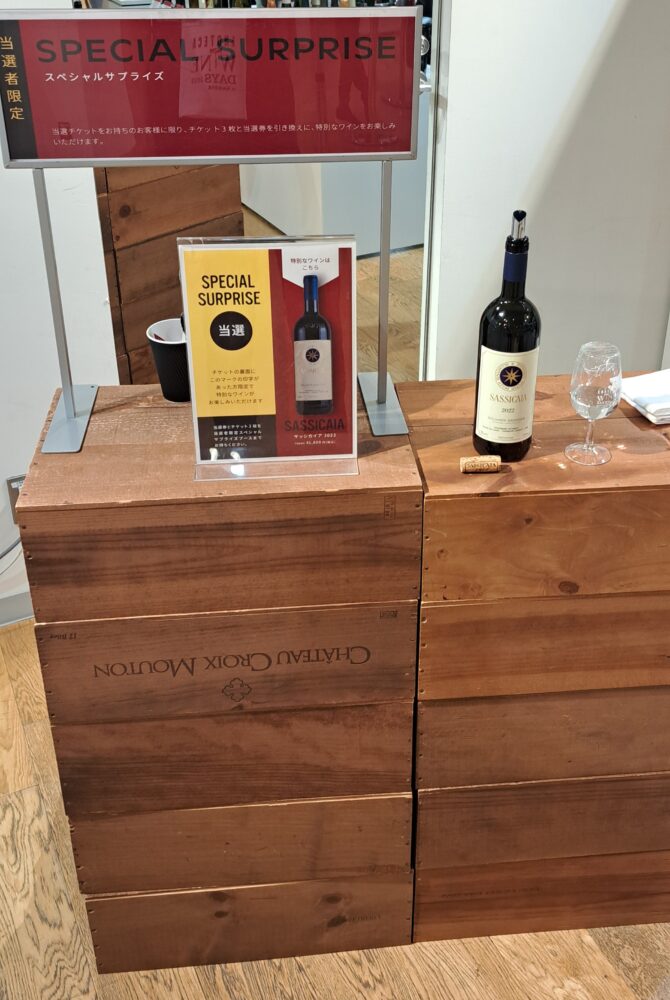 チケットの裏に「当選」と書いてあった場合は、高級ワインをチケット3枚で飲むことができます。