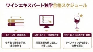 難関と言われるワインエキスパート・ソムリエの一次試験、正しいやり方で勉強して、独学でも合格してくださいね。